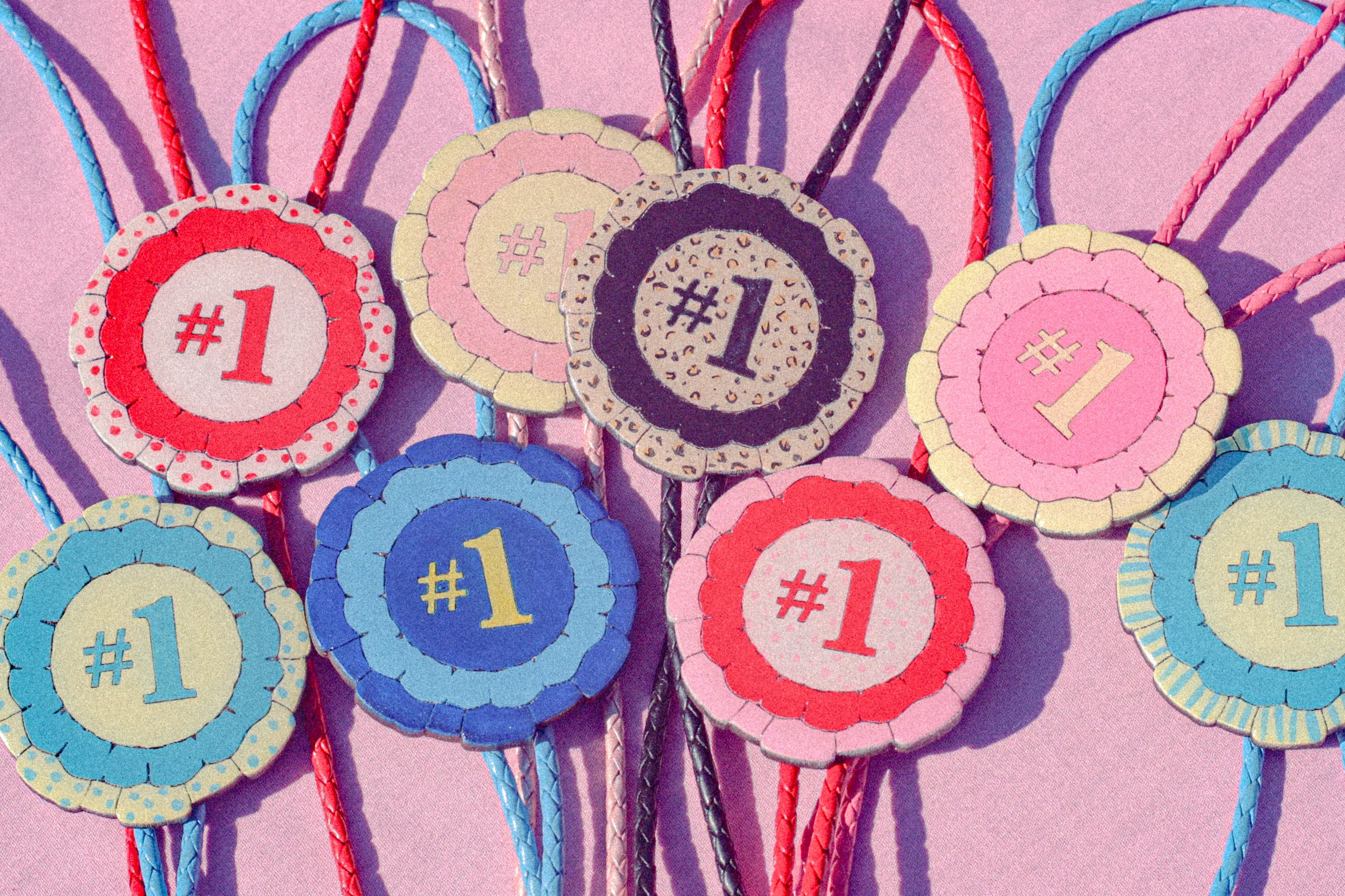 Red and Pink Prize Ribbon Bolo Tie